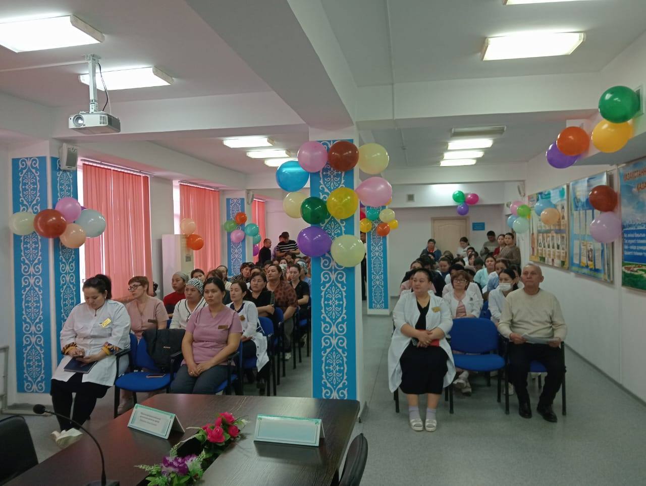 Аудандық санитариялық - эпидемиологиялық бақылау басқармасының маманы - Н.Кауменованың қатысуыменен жан жақты түсіндірме жұмыстары жүргізіліп, тақырыпқа сай бейнероликтер көрсетілді, жұқпалы аурулардың алдын алу шараларына тоқтала әңгімелер қозғалды. Барлығы - 35 - тен аса медициналық қызметкерлер қатысып шарада 40 ақпараттық танымдық материалдар таратылды.