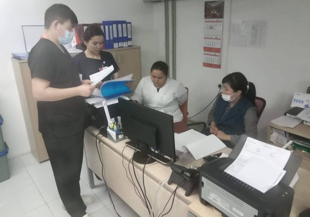Облыстық денсаулық сақтау басқармасының 22.01.2025 жылғы №29 бірлескен бұйрығында көрсетілген кестеге сәйкес туберкулездің ұлттық программасының орындалуының 12 айлық қорытындысы бойынша ағымдағы жылдың 24 қаңтар күні «Өндіріс» ЖШС емханасына МжБ тобы, құрамында топ жетекшісі Г.Рахманбердиева, координаторлар Г.Мустафаева, Е.Сагиндиков, А.Арыкбаева қатысуымен мониторинг жасалды.